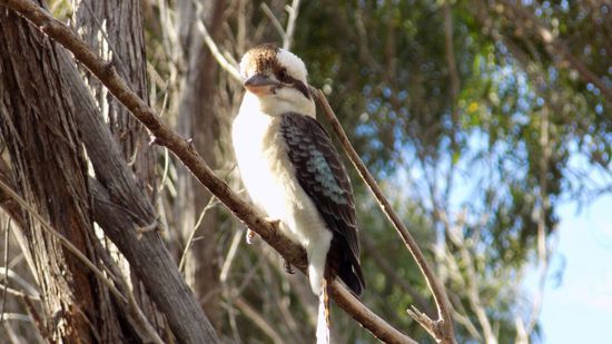 Auf unserer ca. 2km Wanderung durch den Uferurwald werden wir von diesem Kookaburra kritisch beäugt,