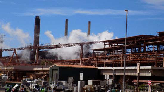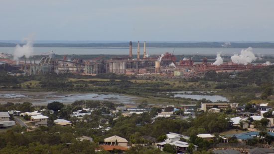 Ein paar km weiter die Queensland Alumina, hier wird Bauxit zu Aluminia umgewandelt (ca. 6% der Weltproduktion),