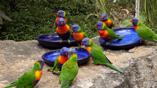 Süß- und Salzwasser Krokodile und auf Futter wartende Lorikeet sehen,