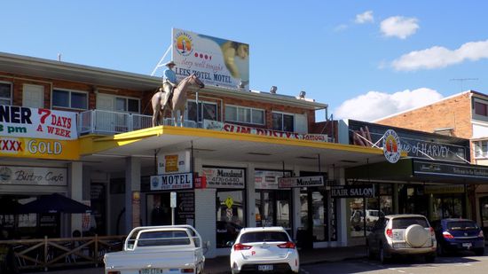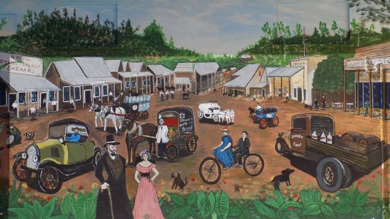 Heute können diese Sammler-Stücke bei seinem Nachfolger gegen AUD 10 besichtigt werden. Lokale Künstler haben dieses schöne Mural zur Stadtgeschichte geschaffen