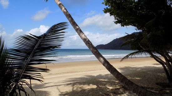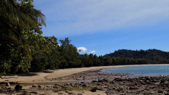 zum einen reicht das Great Barrier Reef (unter UNESCO Schutz) hier bis in den Strand / Uferbereich, zum anderen dring hier der Tropische Regenwald (ebenfalls unter UNESCO Schutz) bis in den Strandbereich vor. Solches Schutzgebiet können wir uns natürlich nicht entgehen lassen und machen daher im Clump Mountain NP (Wald trifft Strand)