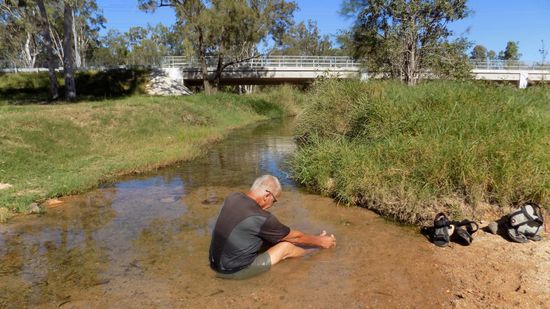 Irgendjemand wird das schon mal nachgemessen haben, uns kommen die ca. 20m nicht soooo bemerkenswert vor. Wir fahren weiter zu den Innot Hot Spring, wo man sich als Tagesgast auf dem Campingplatz für AUD 10,-pP in einen der 5 wohl-temperierten Pools legen kann, (oder Stellplatz für AUD 35/Nacht, Pools incl.) die von dem vorbeifliessenden, heisses Wasser-haltigen Bach gespeist werden, oder man gräbt sich – wie die meisten hier - einfach eine Kuhle in das Bachbett