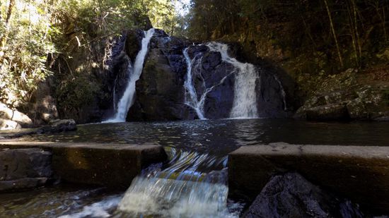 Wir fahren auf dem Old Palmerston Hwy Richtung Süd-Westen, kommen an den Souita Falls