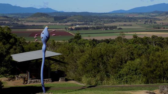 und fahren dafür gleich hoch zum Atherton Hallorans Hill Lookout, wo uns zum einen ein Skulpturenpfad erwartet