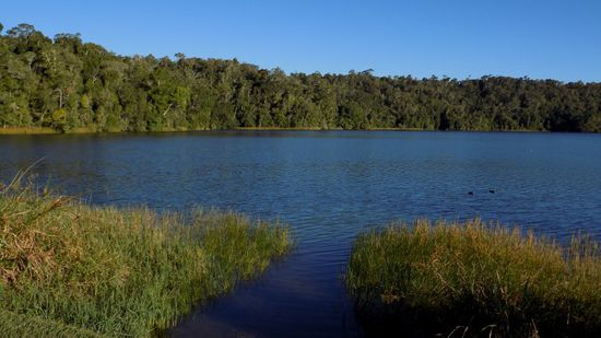 erreichen wir Lake Barrie, einen der zahlreichen Krater Seen hier in der Gegend,