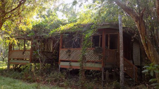 einst eine Goldgrube, Regenwaldhotel, Kaffee, Restaurant…direkt am Zugang zum Cape York gelegen, aber da die ‘neuen Besitzer‘ kein Interesse daran haben dies weiter zu bewirtschaften, verfällt das Ganze, wird vom Urwald überwuchert.