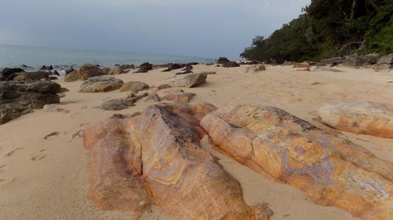 bevor wir uns auf einem Bush Camp SP am Mutee Head Beach niederlassen. Beim Abendspaziergang entdecken wir im Uferbereich noch diese Gesteinsformationen,