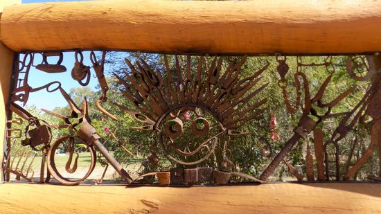 mit dem der zum Betreiben der Maschinen benötigte Dampf erzeugt wurde, immer noch sehr beeindruckend aus – vor allem wenn man nun noch bedenkt, dass diese Geräte seit gut 120 Jahren hier ungenutzt herumstehen. Dieses Privat-Haus mitten im Minengebiet beeindruckt durch seine aus Fund- und Sammelstücken geschaffenen Kunstobjekte