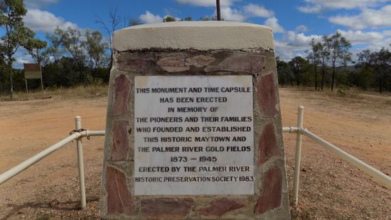 einst eine Anlage mit 15 Stampfern, liegt nur mehr dieser Trümmerhaufen herum und auch von Maytown selbst ist nur noch sehr, sehr wenig zu sehen. Dieser Gedenkstein,