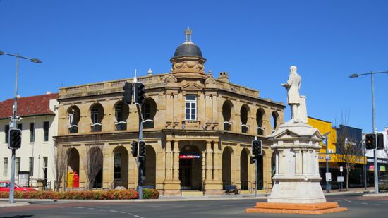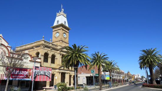 wo uns eine Schautafel auf die fast regelmäßigen Überschwemmungen hier hinweist. Im Rekordjahr 1976 stand dieser Frosch etwa 9m unter Wasser und auch zwischen 2010 und 2013 stand das Wasser hier 3mal über 8m hoch. Beim Bummel durch die Stadt die üblichen Sehenswürdigkeiten wie Town Hall (Rathaus)