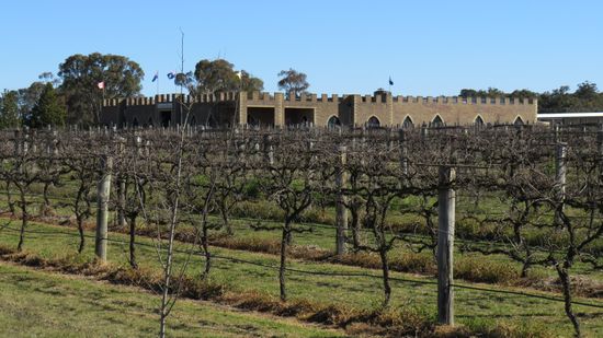 einem an ein schottisches Schloss erinnern sollendes Weingut, in dem unter anderem Köstlichkeiten wie Portwein mit Chiligeschmack (0,7l = AUD 25) hergestellt werden. Leider kann uns keines der vielen farbenprächtigen Produkte so wirklich überzeugen,