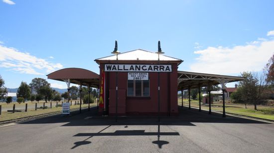 und das wird ganz besonders am alten Bahnhof deutlich, dessen rechtes Vordach, das auf der NSW Seite ein Flachdach ist, während auf der QLD Seite eine halbrunde Form bevorzugt wurde.