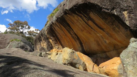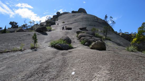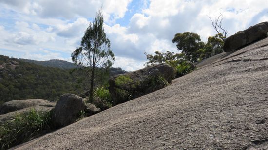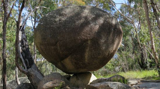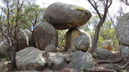 Viel schlimmer aber noch, man konnte sich damals um 1880 auf keine einheitliche Spurweite einigen, so dass die Züge auf der QLD Seite auf um etwa 30cm schmäleren Schienen fuhren, also hier alles umgeladen werden musste, bevor an einen Weitertransport in die andere Provinz zu denken war (Obelix lässt grüßen). Wir fahren nochmals ein paar km zurück in den Girraween NP, wandern dort am Granite Arch
