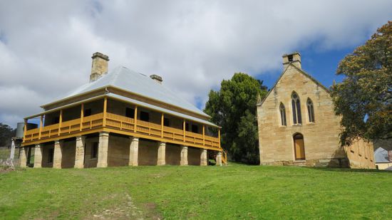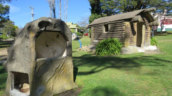 um 1815 der erste aus den Sandsteinfelsen gehackte Kutschenweg über die Blue Mountains, der die Besiedlung des Landes westlich dieses Gebirges erst möglich machte. In der Ortsmittel von Mt. Victoria die Reste des Little Zoo aus den 30er Jahren,