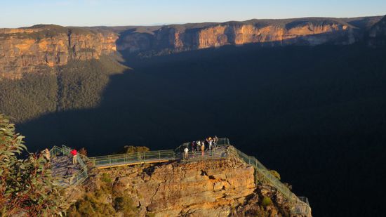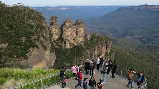 man kann die Katoomba Falls mit den 3 Sisters im Hintergrund bewundern, oder am Echo Point den Platz von Königin Elisabeth einnehmen und die drei Felsen auf sich wirken lassen,