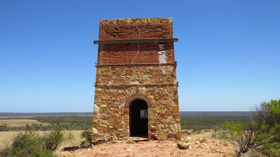 und biegen dann zum Warribanno Chimney ab, den Überresten einer ehemaligen Bleierzverhüttungsanlage,
