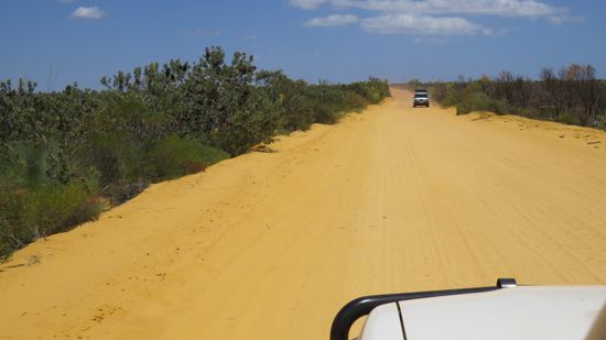 Um den Besuchern das Leben hier nicht ganz einfach zu machen, wurden die letzten 12km der insgesamt 25km zu den nächsten Lookouts einfach ‚naturbelassen‘ = Sand und Wellblech,