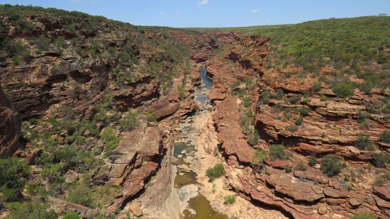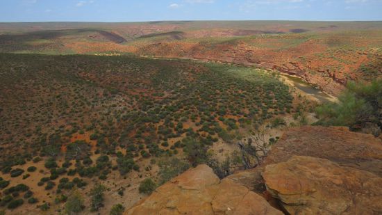 die von 1858 bis 1859 ganze zwei Jahre in Betrieb war. Wir erreichen unser Hauptziel für heute, den Kalbarri NP und fahren dort gleich zum Hawks Head Lookout