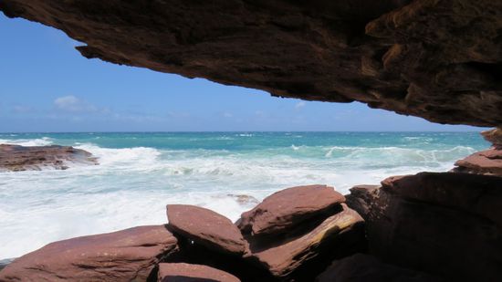 bei dem wir erneut feststellen, dass dies bisher der mit Abstand am besten gepflegte NP in WA ist. Die Mushroom Rocks selbst, champignon-grosse harte Auswüchse aus dem weichen Sandstein dann eher eine Enttäuschung, über die die schönen Felsformationen am Ufer aber hinwegtrösten.