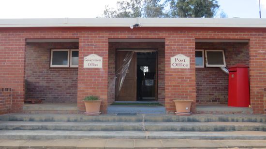 einer Zwergschule (= altes Schulhaus mit genau einem Klassenzimmer), dem Noondamurra Pool,