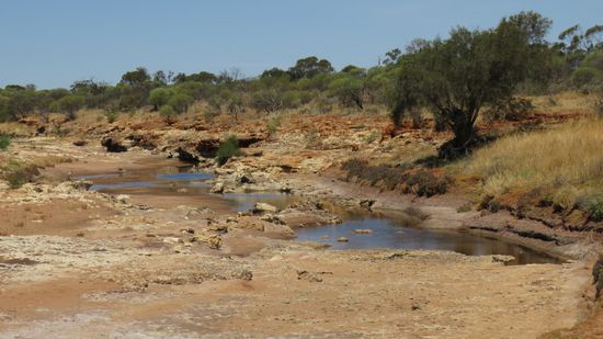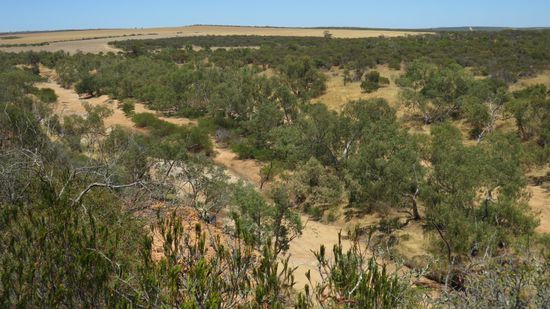 Wir fahren nun Richtung Osten, zurück ins Outback, denn wir wollen als nächstes die Northern Goldfield von WA besuchen. Der Weg dahin ist weit, lang, aber wir haben ja keine Eile, machen ein Päuschen in der Eradu Natur Reserve und schauen runter auf den ausgetrockneten Greenough River,