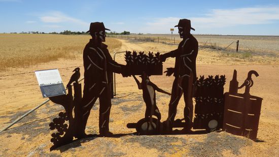 lassen uns im Gold&Wool Interpretive Park über die Hochs und Tiefs der Schafzucht und der Goldsuche aufklären und befahren dann den 18km langen Heritage Drive, der uns am ersten Brunnen von 1908 vorbeibringt,