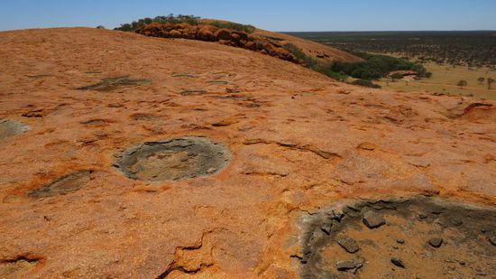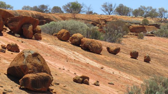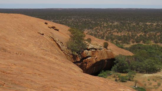 der größte mit 160km Durchmesser ist irgendwo in SA. Der Walga Rock, nach Uluru Australiens zweitgrößter Monolith, ist in einer Höhlung reich mit Rock Art verziert,