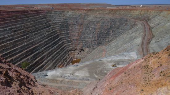 Heute wird dort Open Pit Mining betrieben, das Loche 300m tief, 960m breit und ein 1,6km langer Tunnel führt zu den Goldadern,