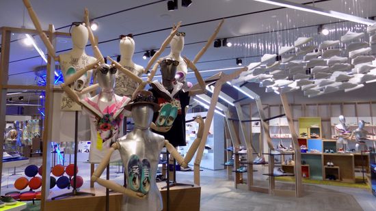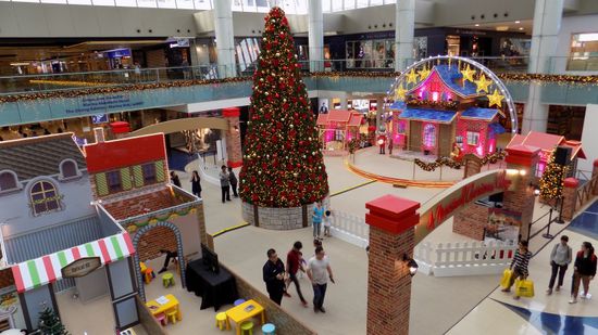 Die Einkaufszentren hier buhlen mit ihrer Weihnachtsdekoration um die Wette, Weihnachtsbäume mit und ohne Swarovskibehang sind eher schon normal, aber dieses Sportgeschäft in der neu gestalteten Scotts Plaza hat sich da schon was besonderes einfallen lassen.
