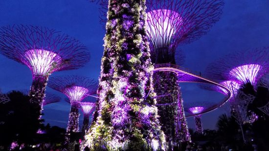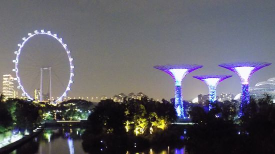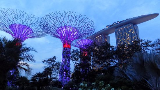 die gegen 19:45 während einer Light and Sound Show zu Klängen wie ‚Ode an die Freude‘ zeigen, wie viele LED’s in ihnen versteckt sind. Zwischen den Bäumen wurde auch noch ein Skywalk = Baumwipfelpfad angelegt,