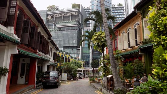 Die Strasse hoch am Orchard Gateway eine Wohltat für die Augen nach all dem Stahl und Glas diese noch original erscheinende Häuserzeile.