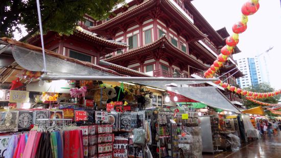 wo die Häuser in den 90er Jahren alle abgerissen und im alten ‚Singapur Stil‘ wieder aufgebaut wurden. Vorbei am Hindu Tempel entdecken wir den neu erbauten Buddha Tempel in dem im vierten Stock ein Zahn als Reliquie aufbewahrt wird. Von aussen kann dieser riesige Bau kaum fotografiert werden,