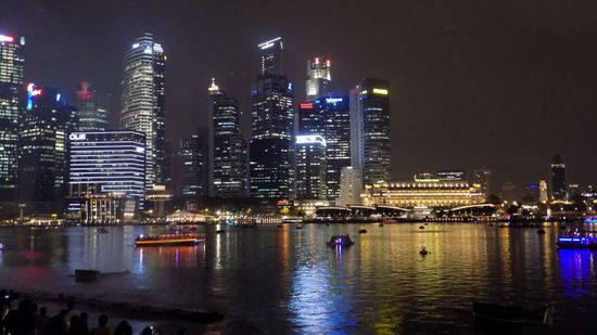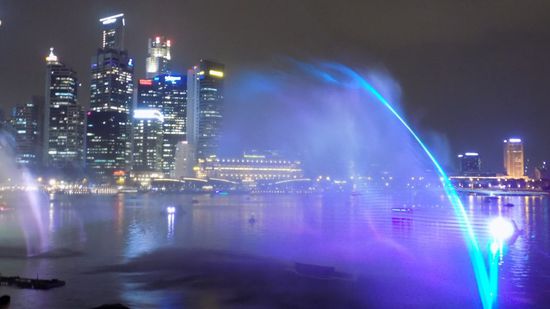 einem weniger bekannten und daher fast nur von Einheimischen besuchten Hawkercenter, einer Ansammlung von verschiedensten Essensständen, hier unter dem Dach einer ehemaligen Markthalle, wo einfach quer durch die verschiedenen Küchen Asiens so alles denkbare geboten wird. Den Abend beschliessen wir bei der Light & Sound Show diesmal vor dem Sands Hotel und Casino, einer Lasershow bei der im Sprühnebel von Springbrunnen Gesichter,
