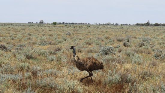 Den nächsten Morgen verbringen wir Broken Hill mit Einkaufen und Internetbesuchen, bevor wir Richtung Menindee in ein Gebiet mit endlosen Staubstrassen weiterfahren, das bei unserem letzten Besuch hier wegen ‚drohender Regenfälle‘ gesperrt war. Wieder einmal will ein Emu ein Wettrennen mit uns machen,