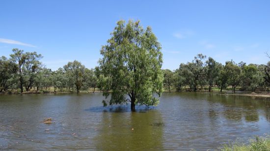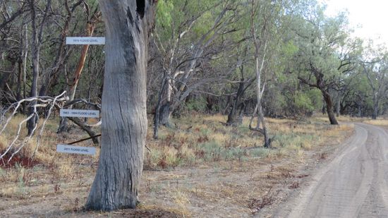 dafür können wir nun mit 5 Monaten Verspätung einen der schönsten Teile des Darling River Run befahren. Diese Hochwassermarke stimmt schon etwas nachdenklich,