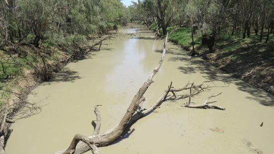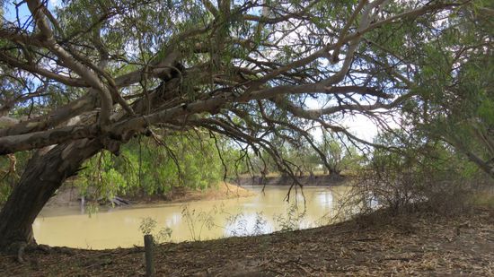 Wir fahren den Lachlan River entlang, das Wasser wie erwartet ‚unklar“, gelöster Ton,