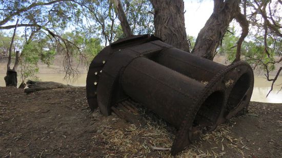 ist ein Mahnmal dafür, dass man(n) sich nicht nur um sich selbst, sondern auch sein Pferd (hier Schiff) kümmern sollte. Gingen doch Kapitän mit der Besatzung dieses Dampfers damals in Menindee in die Kneipe um ihren Durst zu löschen, sogar tödlich. Ob sich dieser Goanna wohl auch noch daran erinnert?