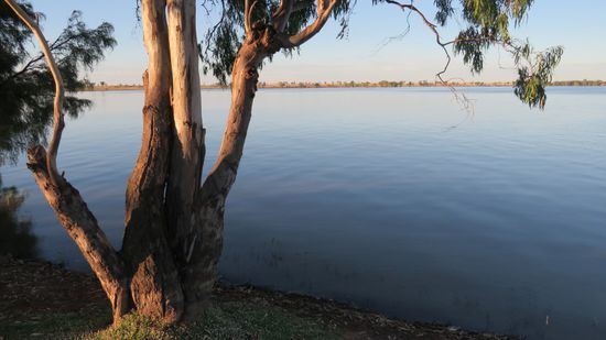 einst Lagerplatz der berühmten Expedition Burke & Wills die die Nordküste von Australien fast erreichte und dann so tragisch endete, bevor wir nur ein kleines Stück weiter am Main Weir unseren SP für heute beziehen und den Sonnenuntergang geniessen.