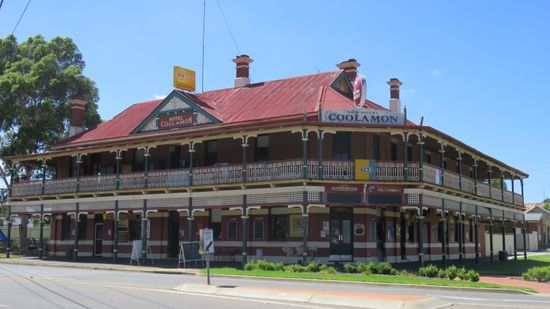Nochmals ein Blick auf unser Wasserloch von gestern Abend, das Coolamon Hotel,