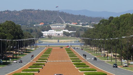 ein kurzer Blick vom Australia War Memorial rüber zum Parlament,