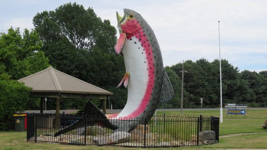 der kleine Ort Adaminaby, der stolz darauf ist die größte Forelle der Welt zu besitzen,