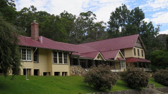 Für den Besuch der Yarrangobilly Caves sind wir wieder einmal zu spät dran, die machen schon um 15h zu, das nebenangelegene alte Hotel sieht zumindest von aussen recht interessant aus,