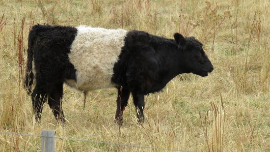 oder ist das doch nur ein Vertreter eine spezielle Rinderrasse mit dieser charakteristischen Färbung? Wir erreichen Cygnet, einst eine Hochburg der Hippies, heute eher ein normaler Ort mit ein paar netten Galerien, einer schönen Kirche