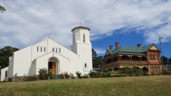 und direkt nebenan einem alten Schulgebäude. Entlang des Huon River