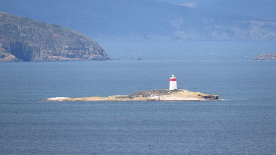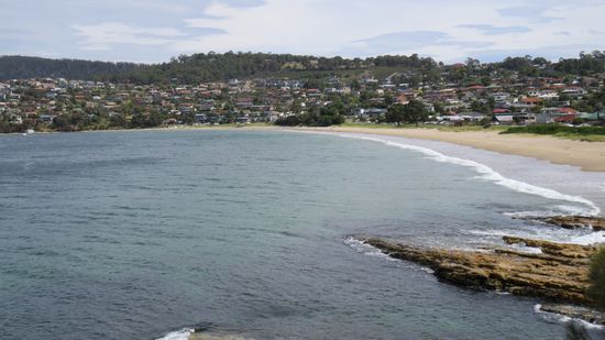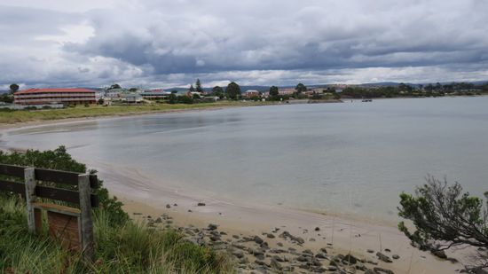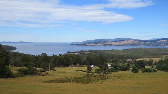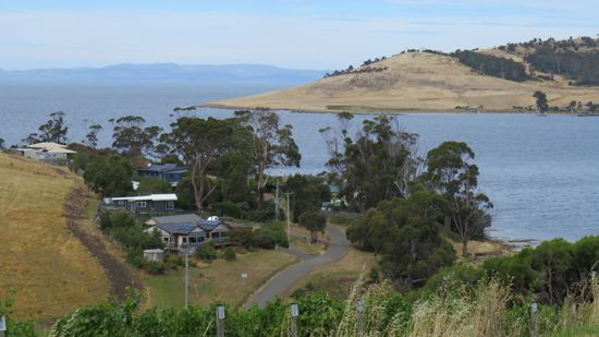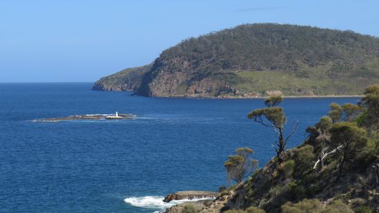 und beschliessen diese Insel diesmal auszulassen, die 2-3 Tage, die man normalerweise zur Besichtigung dieser zwei zusammenhängenden Inseln braucht, lieber auf der Tasmanischen Hauptinsel zu spendieren. Von Tinderbox werfen wir einen Blick rüber auf die Nordspitze von Bruny Island