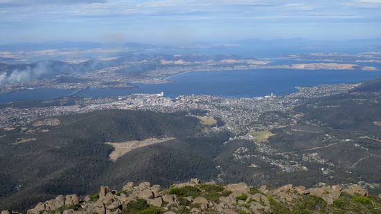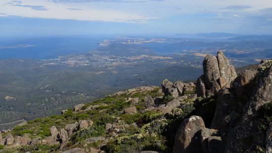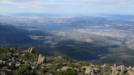 der am letzten Sonntag sich ja so scheu in seinen (Regen-) Wolken verhüllte und schauen runter, auf den Norden von Hobart,