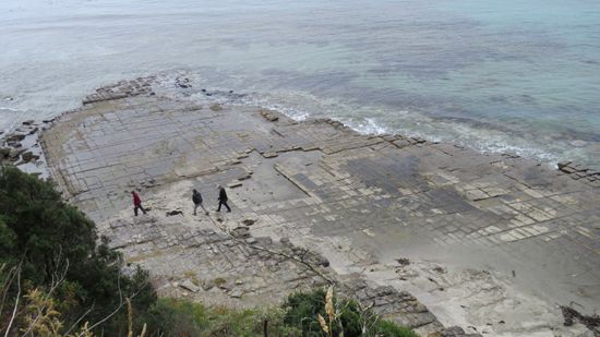 Hier sind wir wieder mal im geologischen Wunderland. Am Tesselated Pavement