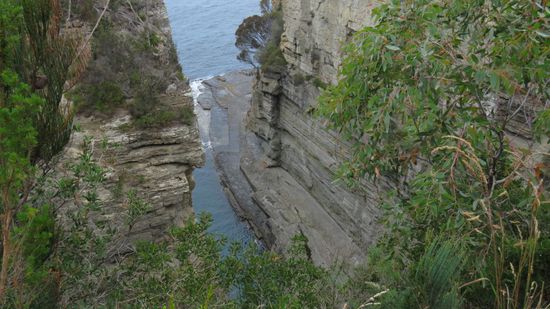 das da draussen, mitten im Meer auf seiner Mini Insel so einsam vor sich hinblinkt. In Blackmans Bay wollen wir eigentlich das in allen touristischen Karten vermerkte Blow Hole besichtigen – und lernen vor Ort, das die ganze Decker über dem Blow Hole schon vor gut 80 Jahren eingebrochen ist und nun allenfalls noch ein Sink Hole mit gut 20m Durchmesser und seinem Arch Richtung Meer besichtigt werden kann.