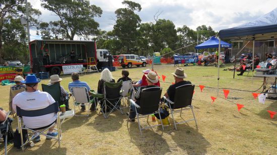 bevor wir nach Primrose Sands weiterfahren, wo heute von 11:00 bis 19:30 ein kleines Country Musik Fest stattfindet. Als wir endlich gegen 16:00 eintreffen, ist der Eintrittspreis reduziert, wir dürfen für AUD 10 (statt AUD 15) auf den Platz, die Party ist in vollem Gange,