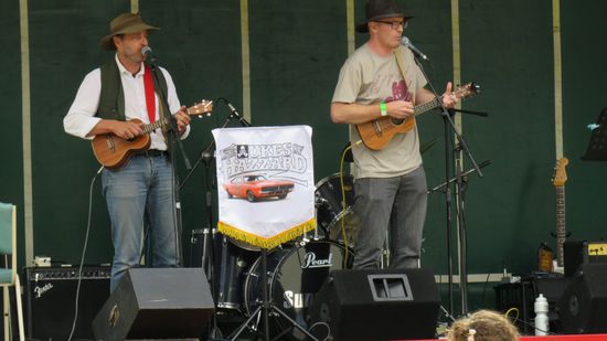 die Musiker recht ordentlich, diese Ukulele Gruppe singen eigene Texte zu bekannten Liedern,